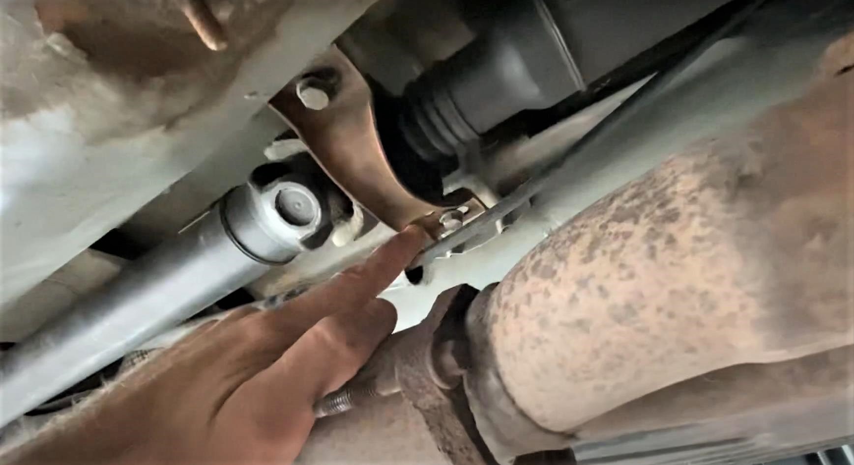 - Снимаем защитные кожухи, экраны и детали, затрудняющие доступ к карданному валу (на некоторых моделях – еще и задние выхлопные трубы);